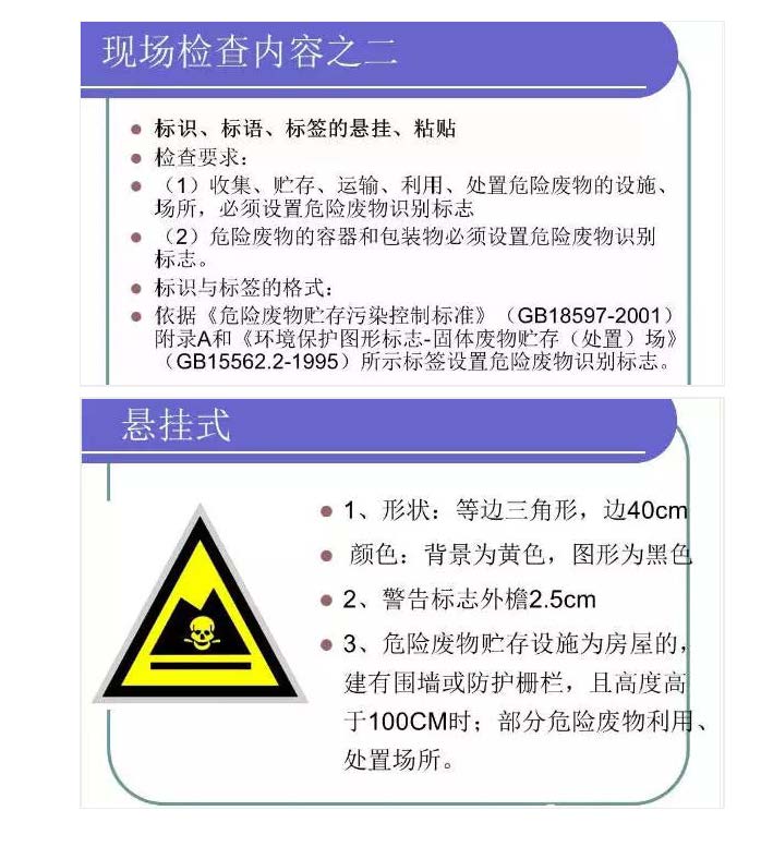 一是建立规范化的危险废物消单台账,危险废物分类分区贮存, 在收集、贮存、运输、处置设置危险废物识别标志, 尤其是要加强对辖区内化工园区、化工和危险化学品单位及危险废物处置单位的监督和检查。