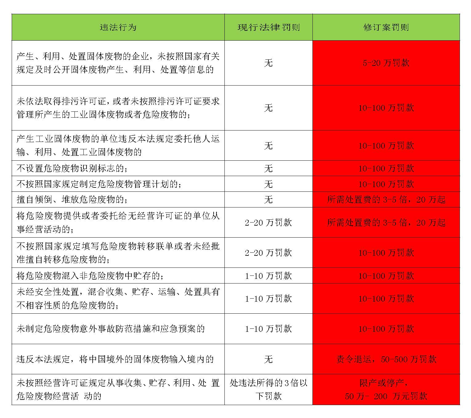 《固废法》修订案涉及罚款的主要变更点: