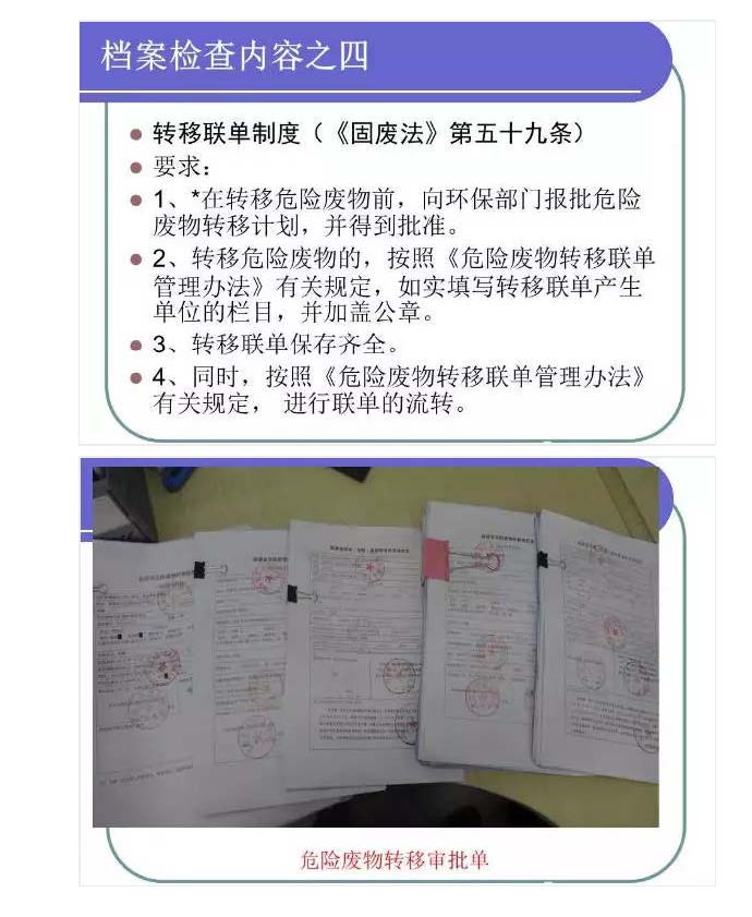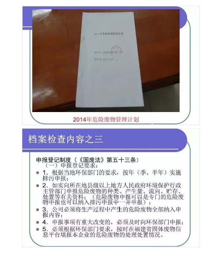 二是落实危险废物巾报登记制度,并将相关行为在严肃查处的同时纳入信用管理,实施联合惩戒;同时建立完善危险废物由产生到处置各环节转移联单制度, 利用信息化手段,控制危险废物流向,动态监管;